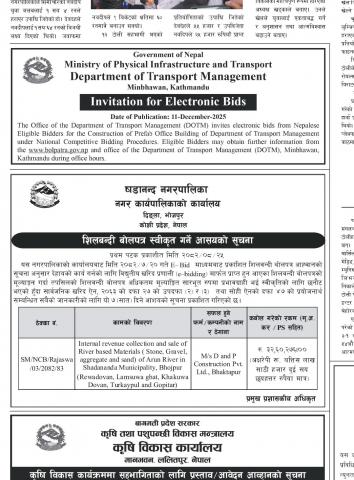सवारी साधन भाडामा लिने सम्बन्धी दोश्रो पटकको सूचना !!! (प्रकाशित मिति २०८२/०९/१८)