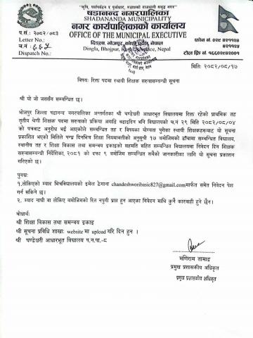 रिक्त पदमा स्थायी शिक्षक सरुवा सम्बन्धी सूचना !!!