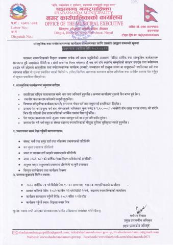 बहाल विटौरी (शनिबारे हाटबजार) कर संकलन गर्ने सम्बन्धी शिलबन्दी बोलपत्र आव्हानको दोश्रो पटक प्रकाशित सार्वजनिक सूचना !!!