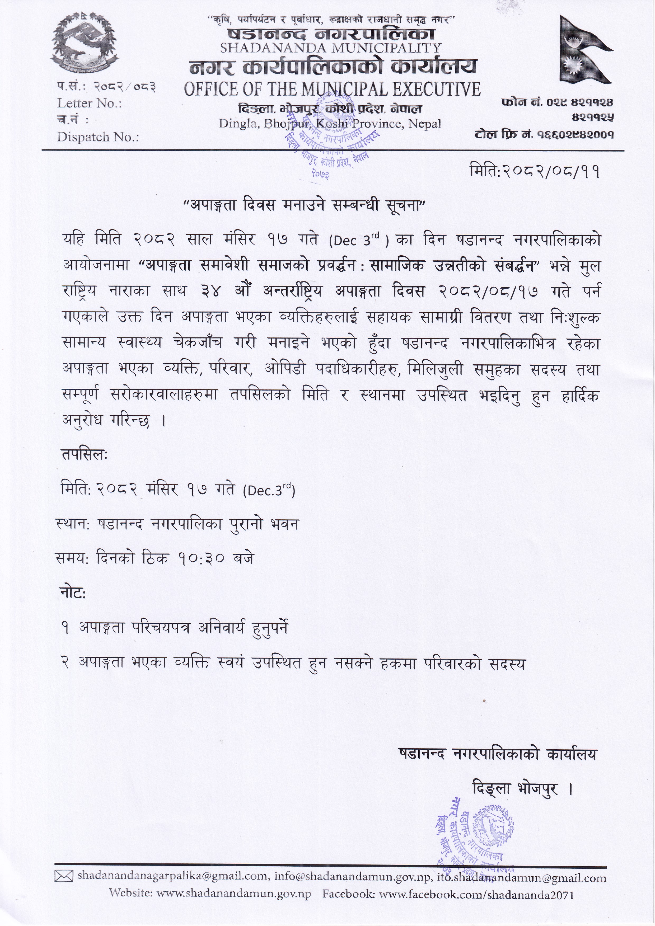 अपाङ्गता दिवस मनाउने सम्बन्धी सूचना !!!