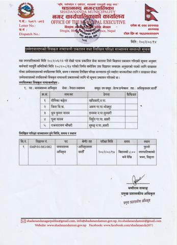 जनस्वास्थ्य अधिकृत पदको लिखित परीक्षाको मिति तोकिएको सम्बन्धी सूचना !