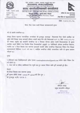 रिक्त पदमा स्थायी शिक्षक सरुवा सम्बन्धी सूचना !!!